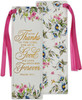 Durable Bookmarker with Encouraging Words: The full sentiment found in Psalm 107:1 is printed in elegant gold foil multi-font text and completed with a pretty pink colored satin ribbon marker for a beautiful finishing touch. The bookmark measures approximately 6.5" x 2.2".